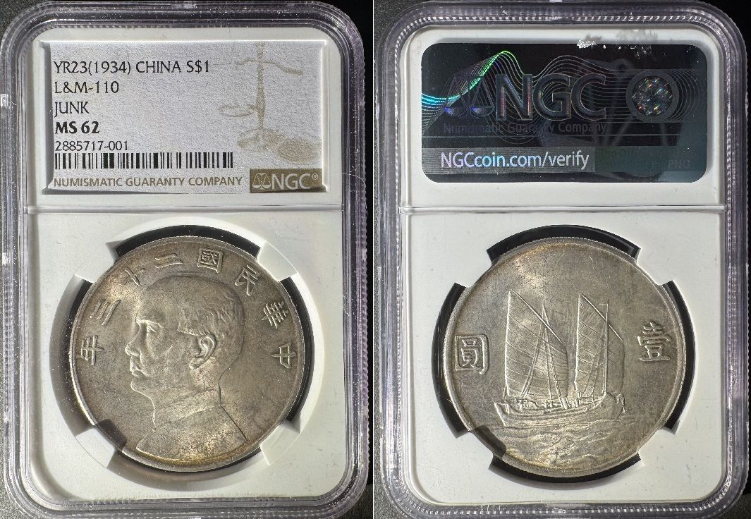 CHINA: Year 23 (1934) Junk Dollar; Y-345, L&M 110. NGC MS-62.