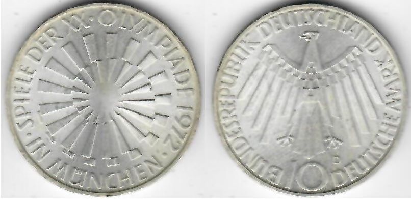 > German Federal Republic 1972-D 10 Deutschemark, KM-134.1