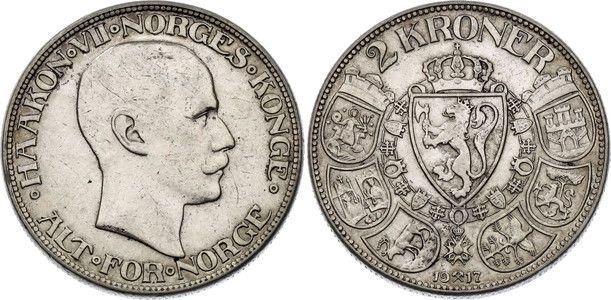 > NORWAY: Haakon VII 1917 2 Kroner, KM-370, Kongsberg Mint
