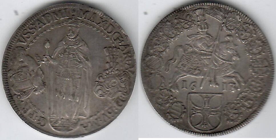 TEUTONIC ORDER: Maximilian of Austria (1588-1618) 1613/12 Ar Reichsthaler (40mm, 28.28g), Hall Mint; Dav 5853, KM-25. Good Extremely Fine. **SOLD OUT**